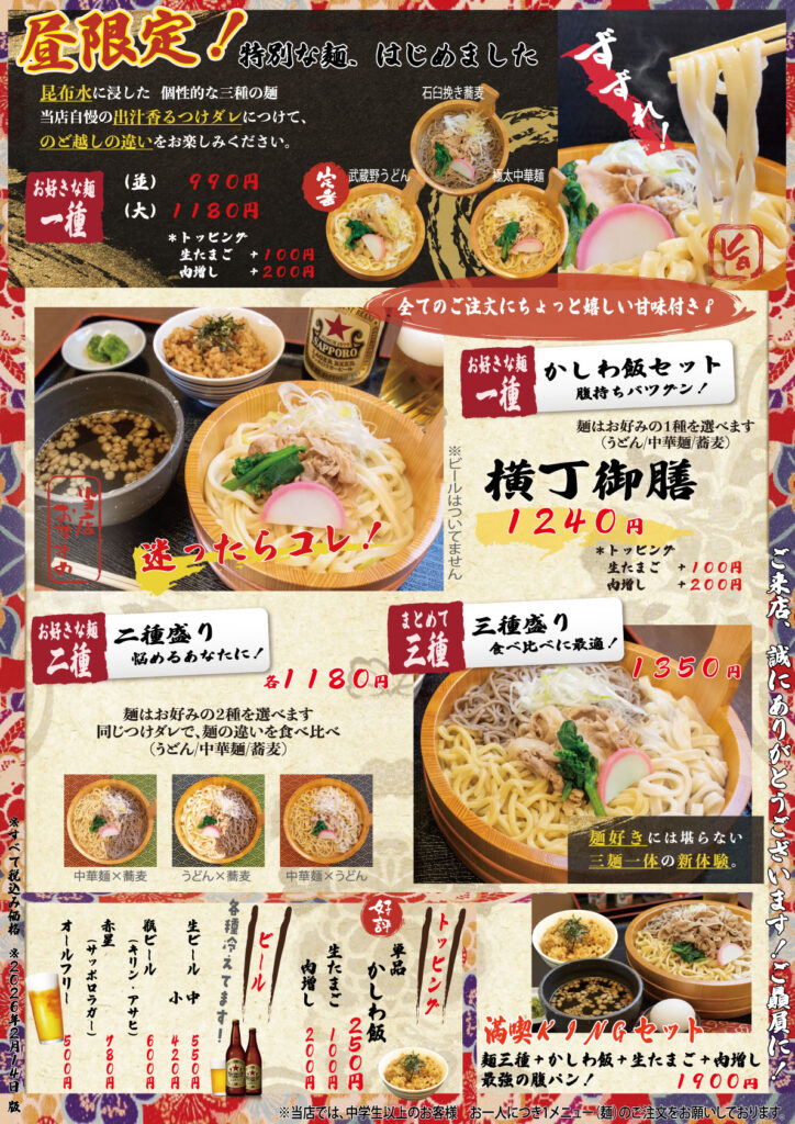 居酒屋 横丁 昼の部 はじめます。